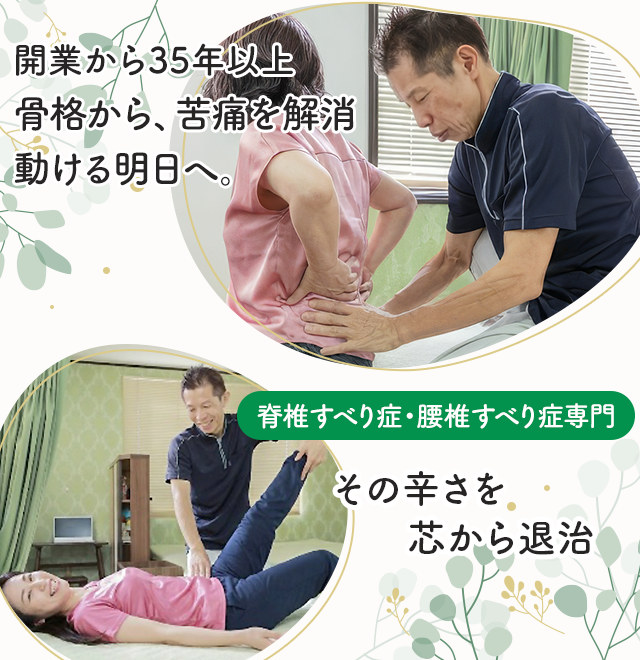 当院では、すべり症の専門施術をしており、根本的に痛みやしびれを改善して日常生活を取り戻すことができます。