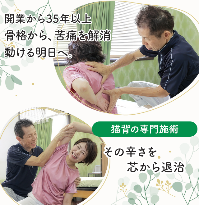 当院では、猫背の専門施術をしており、根本的に痛みやしびれを改善して日常生活を取り戻すことができます。
